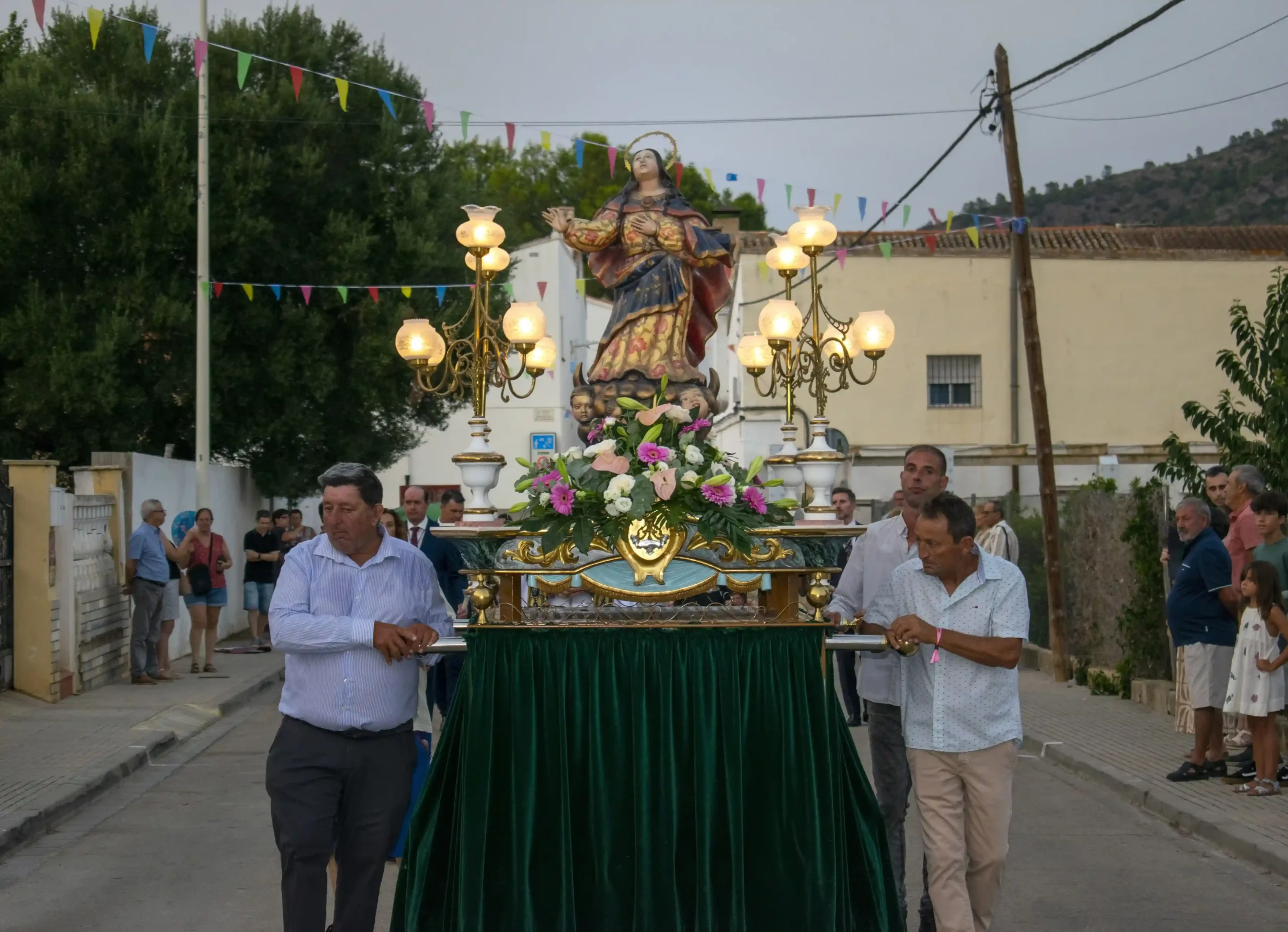 El divendres 15 d’agost va ser el dia central de les festes, dedicat a la tradició i la companyia. El matí va començar amb la solemne recollida de festers, marcant l’inici del dia. Després de la missa, l’alegria va inundar els carrers amb el passacarrer, que va conduir a la tradicional visita als bars per gaudir d’un moment de gresca matinal. La congregació va continuar amb el vi d’honor, un punt de trobada on tot el poble es va reunir per brindar per les festes.
